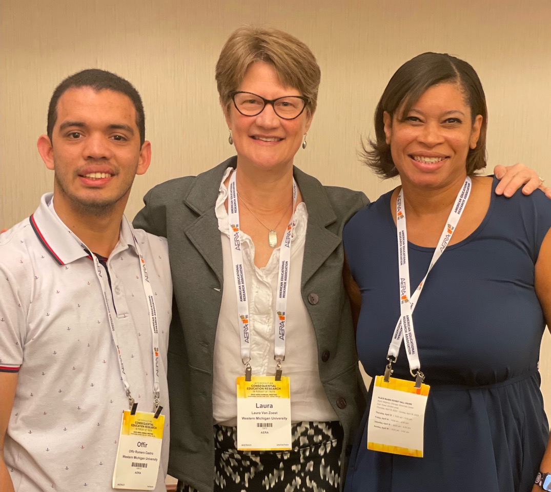 Offir Romero Castro, Laura Van Zoest and Imani Goffney attended the annual American Educational Research Association (AERA) conference in Chicago, IL. Imani Goffney and Laura Van Zoest presented their work, Does It Count if We Don't Say it? Concerns for Equity in Mathematics Education Research.