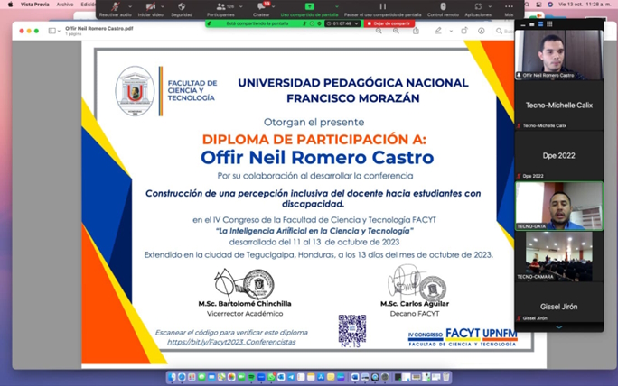 Offir Romero Castro presented the session "Construction of an Inclusive Teacher Perception toward Students with Disabilities" as part of the 4th Faculty of Sciences and Technology Conference, organized by the Francisco Morazán National Pedagogical University (UPNFM) in Honduras.