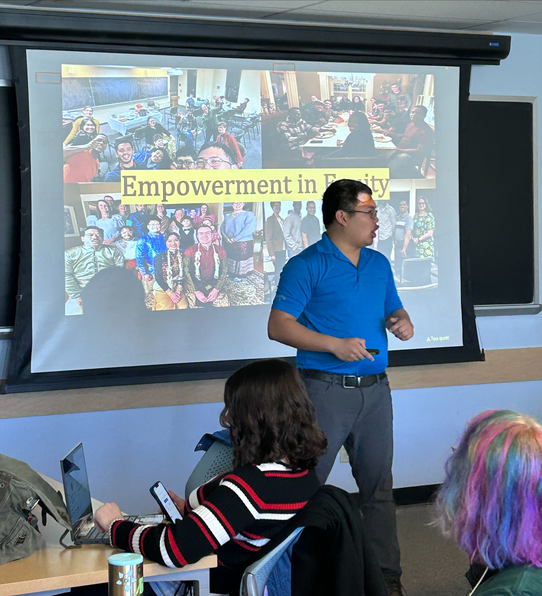 YJ Arciaga and Shekira Edgar were selected to attend the Colorado Conference for Underrepresented Students in Mathematics. They each presented their individual work to a room filled with Colorado State University faculty and undergraduate and graduate students from various institutions across the United States. Shekira presented a poster, Empowerment in equity: A MOST professional development analysis, and YJ gave a talk titled Empowerment in Equity.